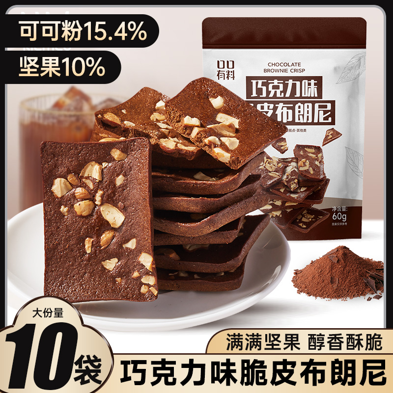 チョコレート味のクリスピーなブラウニーのオフィスは食いしん坊の午後のお茶のケーキを食べてデザートのお菓子の軽食のレジャー食品を注文します。