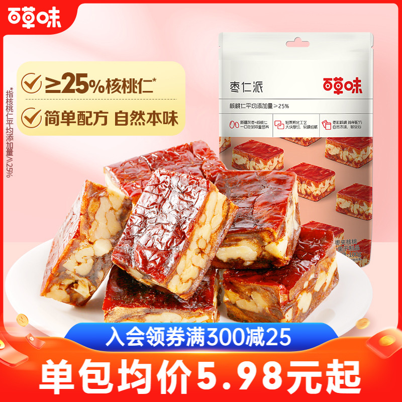 百草味棗仁派100g棗挟み胡桃棗餅無核新疆紅棗間食果乾紅棗レジャー