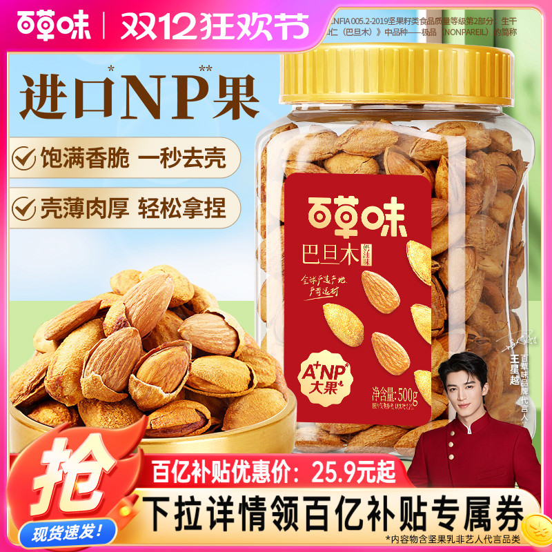 百草味のバダンの薄い殻500g缶入りクリーム味のバタンの木のナッツのバダの木の乾燥している果物のレジャーの間食