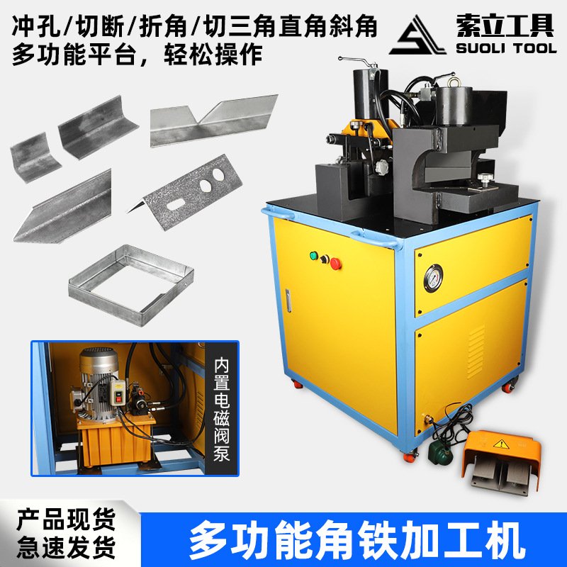電動油圧角鉄切断斜角/切断直角/切断三角折角多運動エネルギー三合一角鉄加工折角機