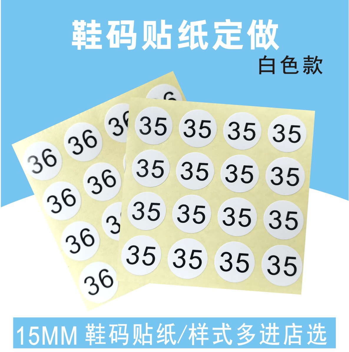靴コード数不乾性白地の黒い字の15mmの円形の四角形のコード数は靴のコード数のラベルを貼って番号を貼って貼ります。