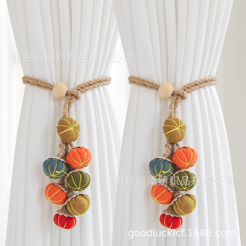 新商品のカーテンはアニメの布芸のかぼちゃの糸のカーテンを縛ってかわいいボールを掛けて収納します。
