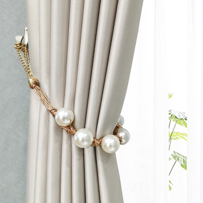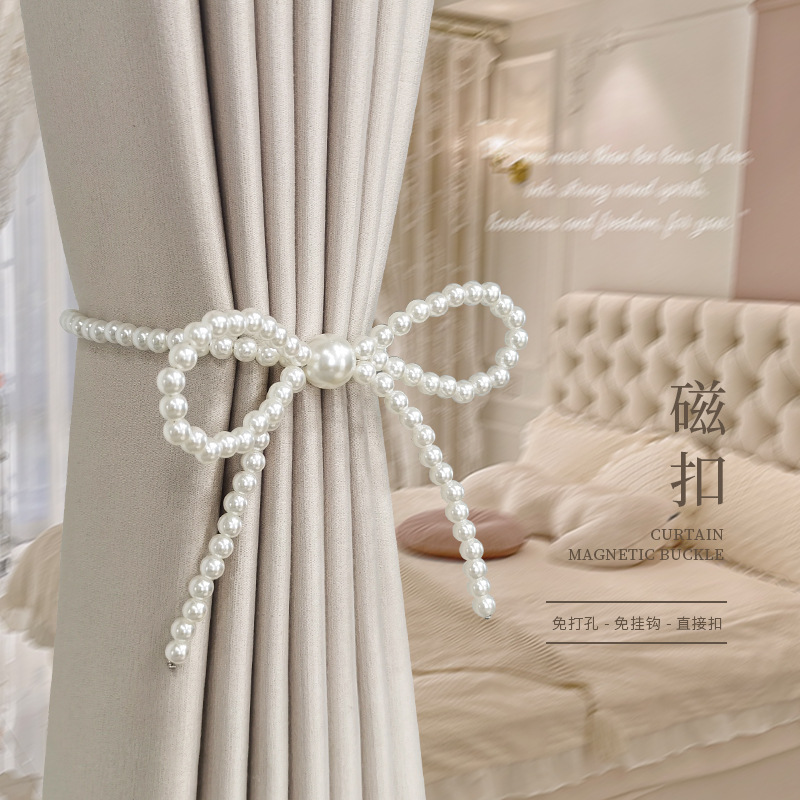パールカーテンのストラップはフランス式の軽くて豪華なカーテンのフックのストラップが可愛いです。