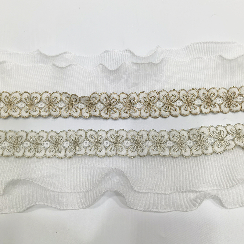 カーテンレースの縁の白い真珠レースの窓の紗の装飾の広い縁は刺繍をつなぎ合わせて枕の側を抱いて補助材料を組み合わせます。