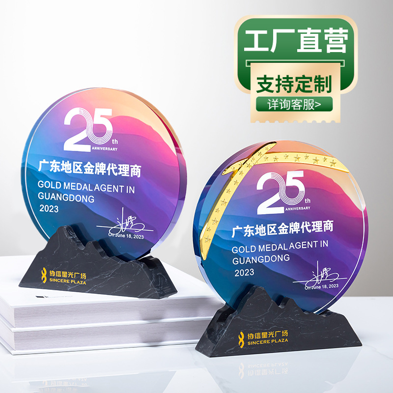 クリエイティブ円形水晶トロフィー優秀代理店店個人チームが大理石実木メダルを授賞した