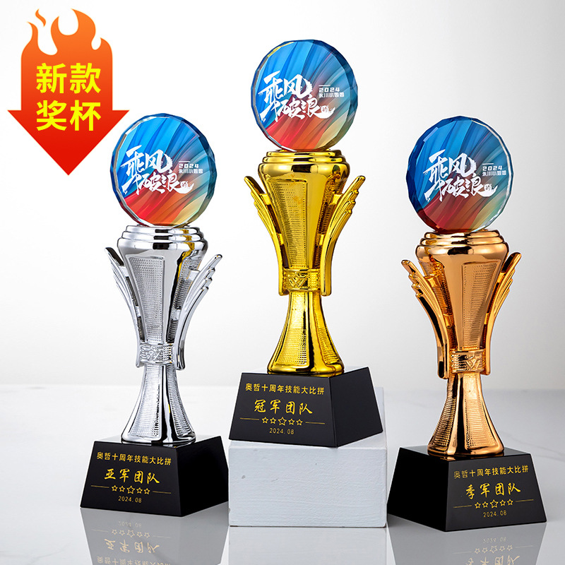 メーカー卸売り水晶金属羽カラートロフィーメダル会社年次総会イベント賞品デザイン