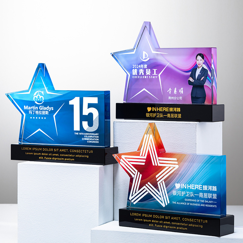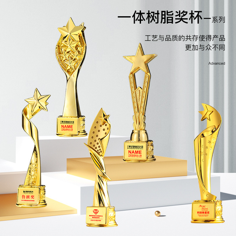 トロフィー樹脂金色トロフィー五芒星水晶メダル年次総会授賞イベント優勝レタリング新優秀
