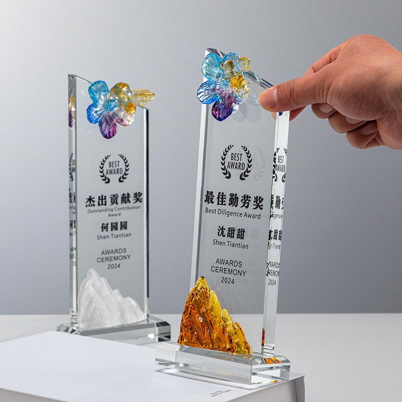 創意瑠璃トロフィーデザイン一歩一歩高昇瑠璃トロフィー栄誉水晶メダル制作年会授賞記念