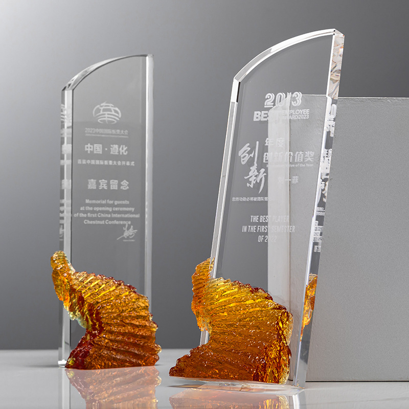 卸売制作会社年次総会イベント競技大会記念賞品一体連体樹脂水晶トロフィー
