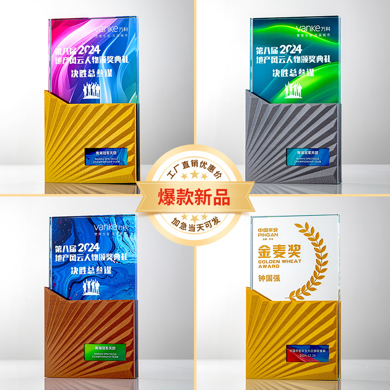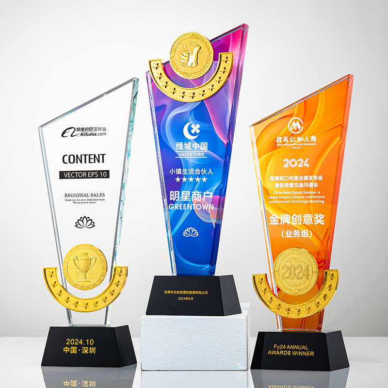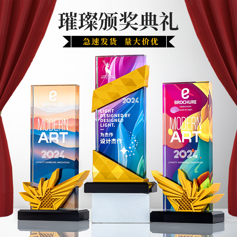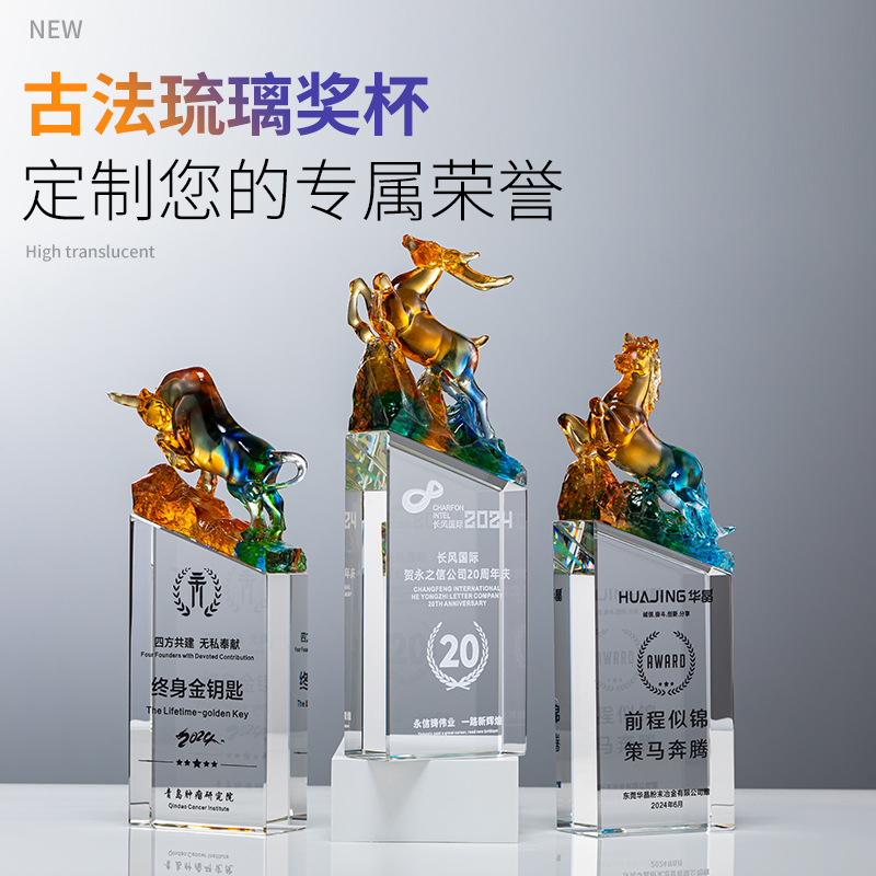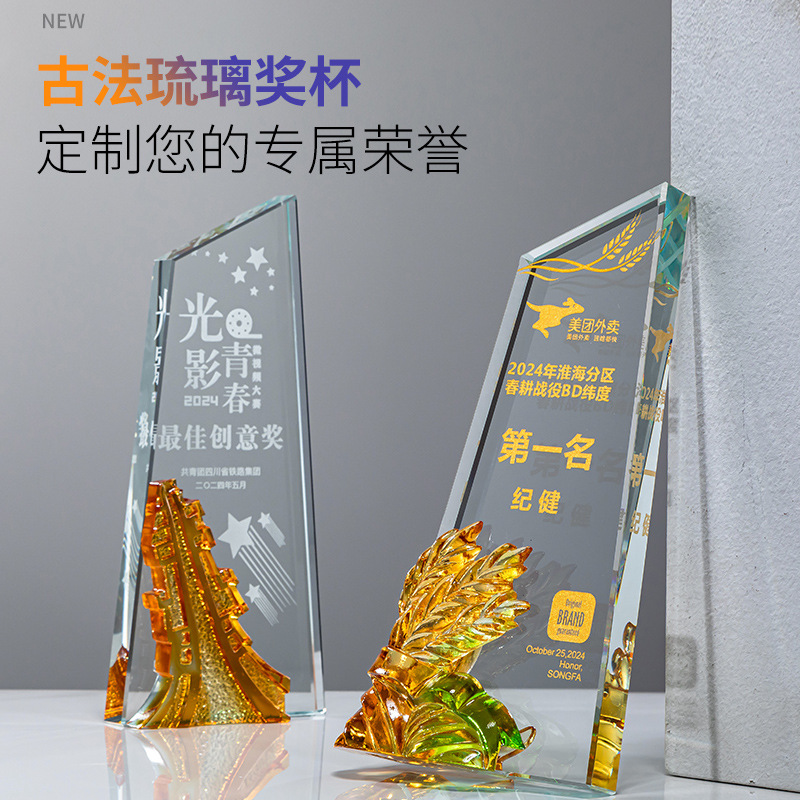 創意瑠璃トロフィー高級水晶記念品優秀社員周年慶冠亜季軍競技瑠璃トロフィー