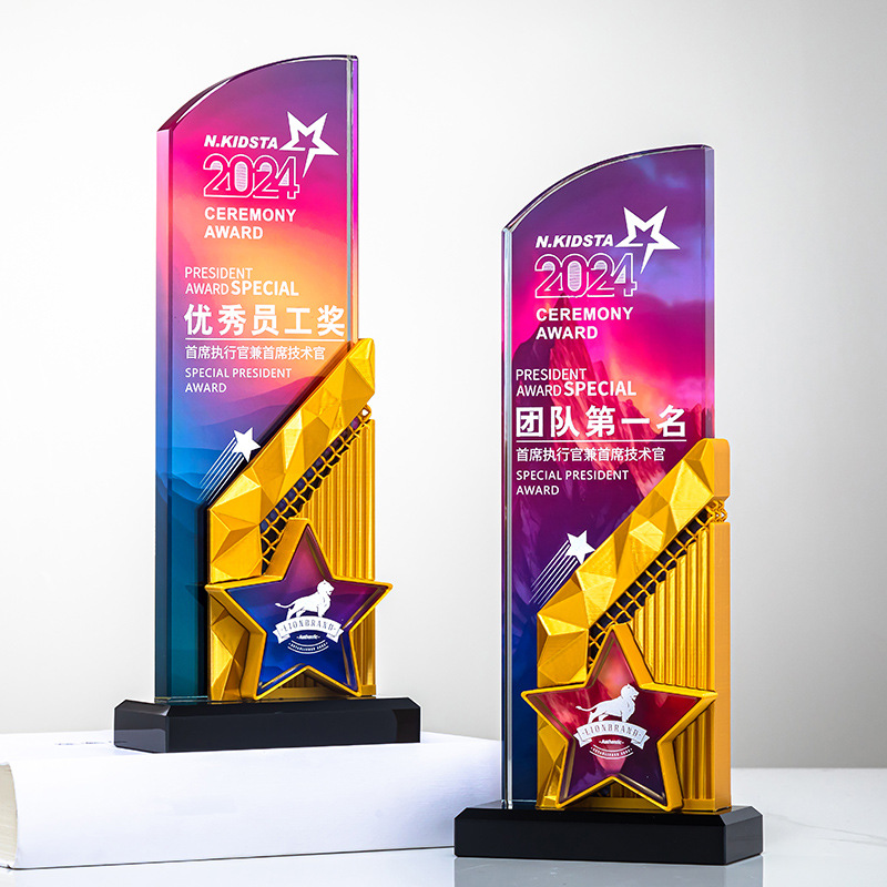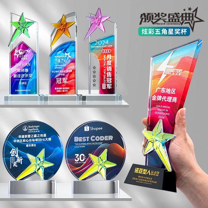 2025新型水晶トロフィー3d印刷創意星トロフィーカラー印刷トロフィー会社記念彫刻授賞