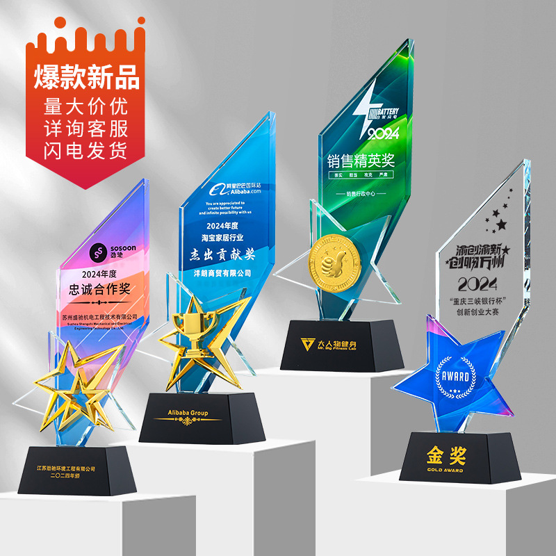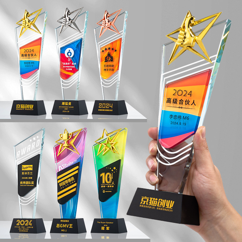 2024新型金属五芒星創意トロフィー年次総会新人優秀社員販売冠チーム水晶トロフィー