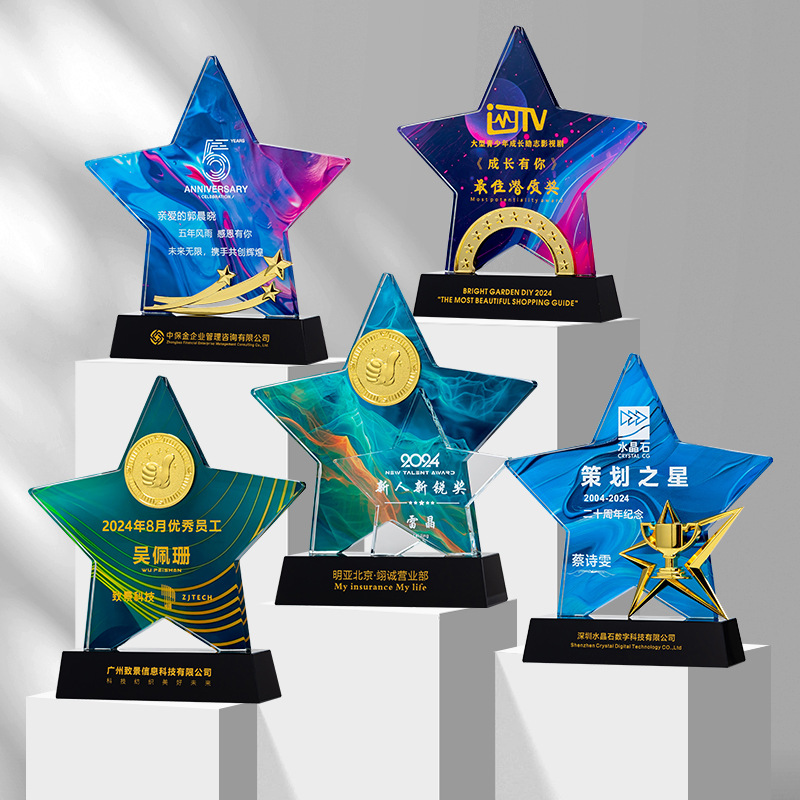 五芒星トロフィー水晶トロフィー彫刻会社優秀社員栄誉記念品メダル授権牌退役新
