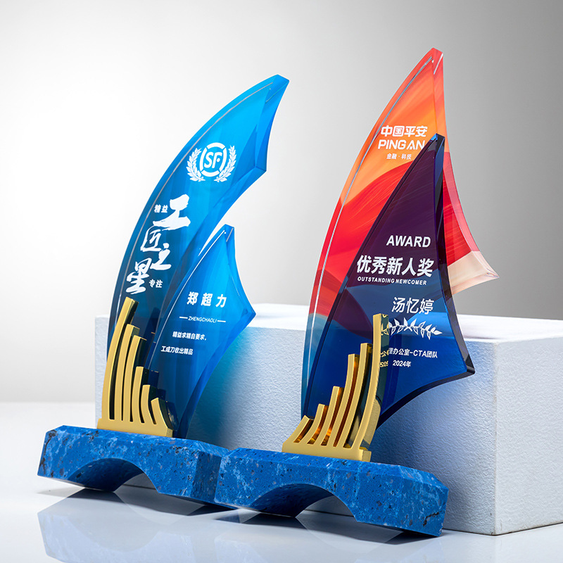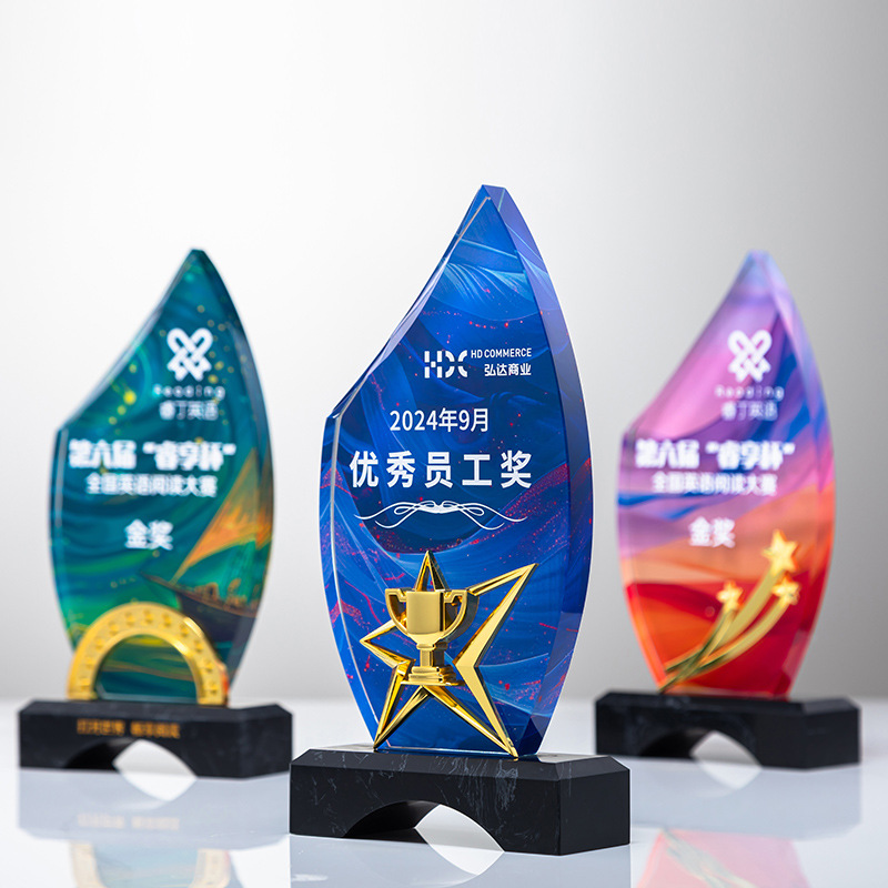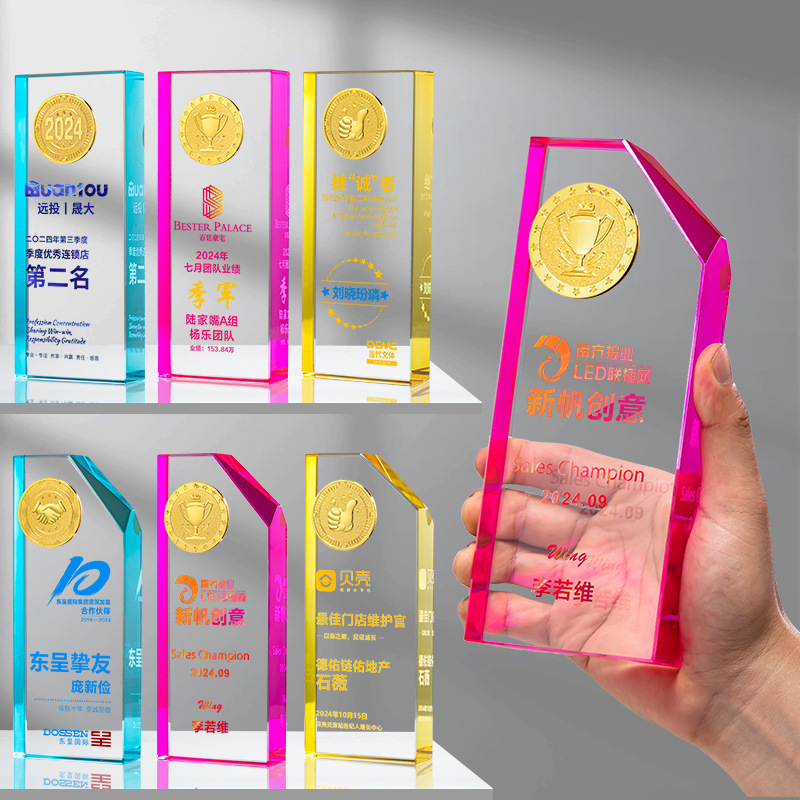 名誉水晶トロフィー周年退職メダル創意制作カラー印星優秀社員年次総会授賞トロフィー