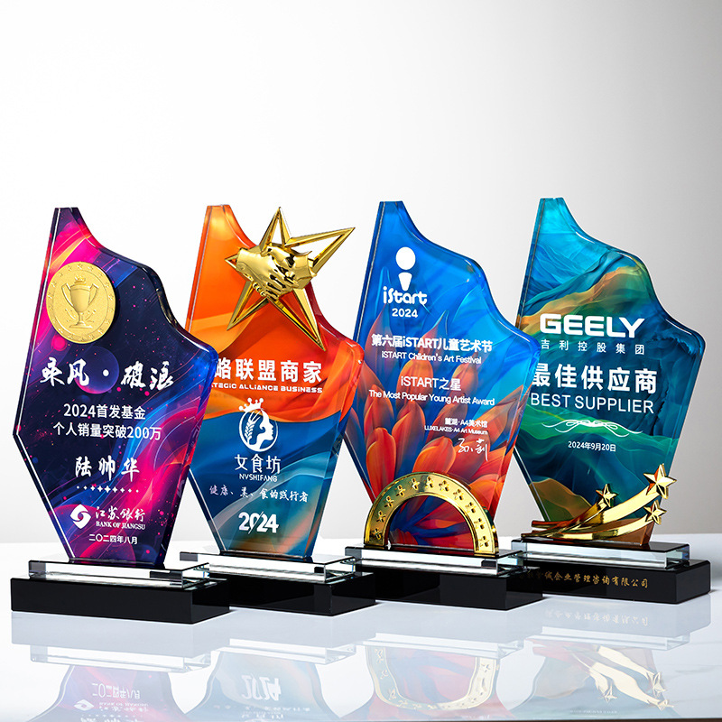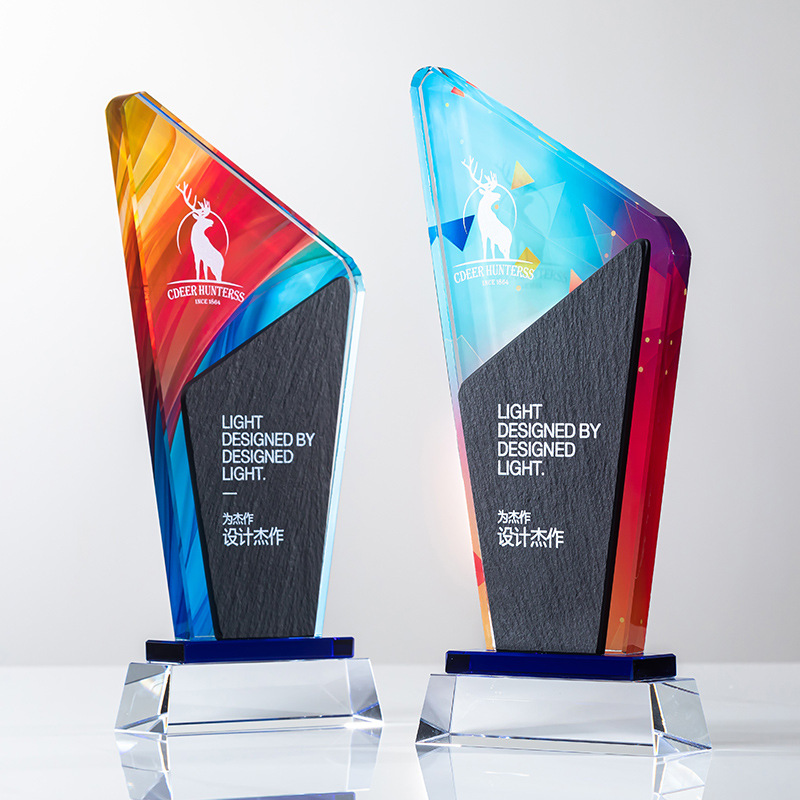 大理石水晶トロフィーカラー印刷優秀社員会社企業年次総会授賞記念トロフィー無料彫刻