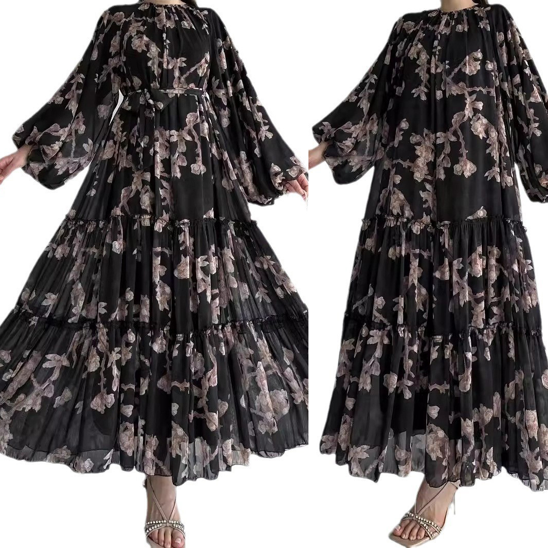 M2755 アマゾンレディース中東イスラム教徒シフォン新しいロングスカートベルト付きファッショナブルでエレガントなドレス