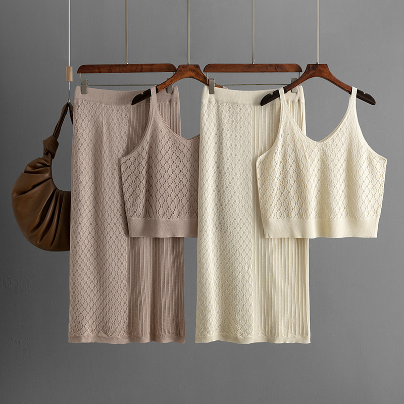 2025 新しい夏スタイル中空ショートサスペンダーニットスーツヨーロッパとアメリカのクロスボーダースカートカジュアル 2 点セット