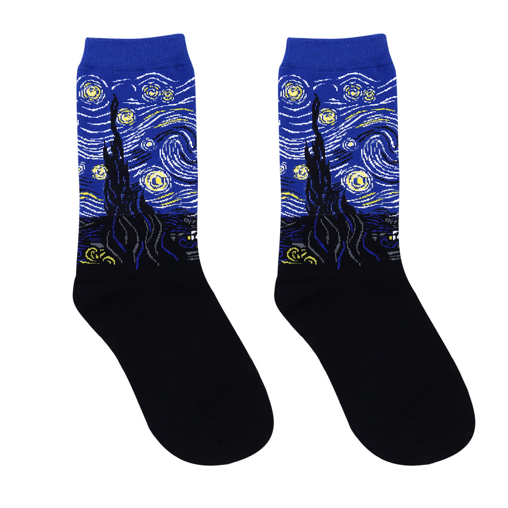 Sc003ゴッホ星空コンピュータジャカード中筒綿靴下秋冬保温綿靴下カジュアル百合運動綿靴下