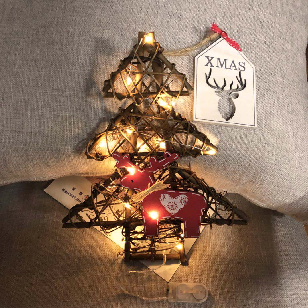 Bz1077 20ledライトクリスマス手作りdiy樹藤条編みクリスマスツリー形ライト付き装飾