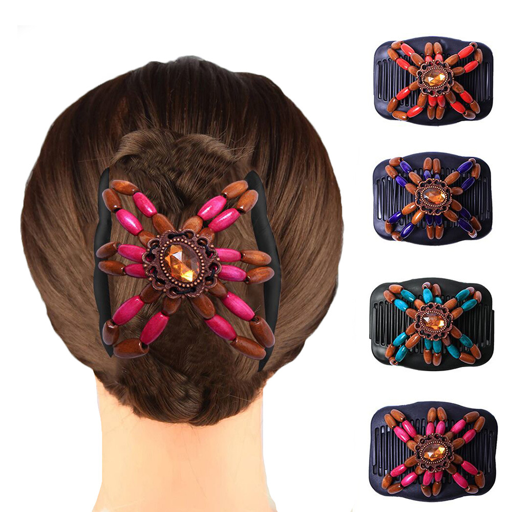 Bz929模造木双列挿し百変魔髪櫛女性マジック髪櫛盤髪器多用櫛卸売り