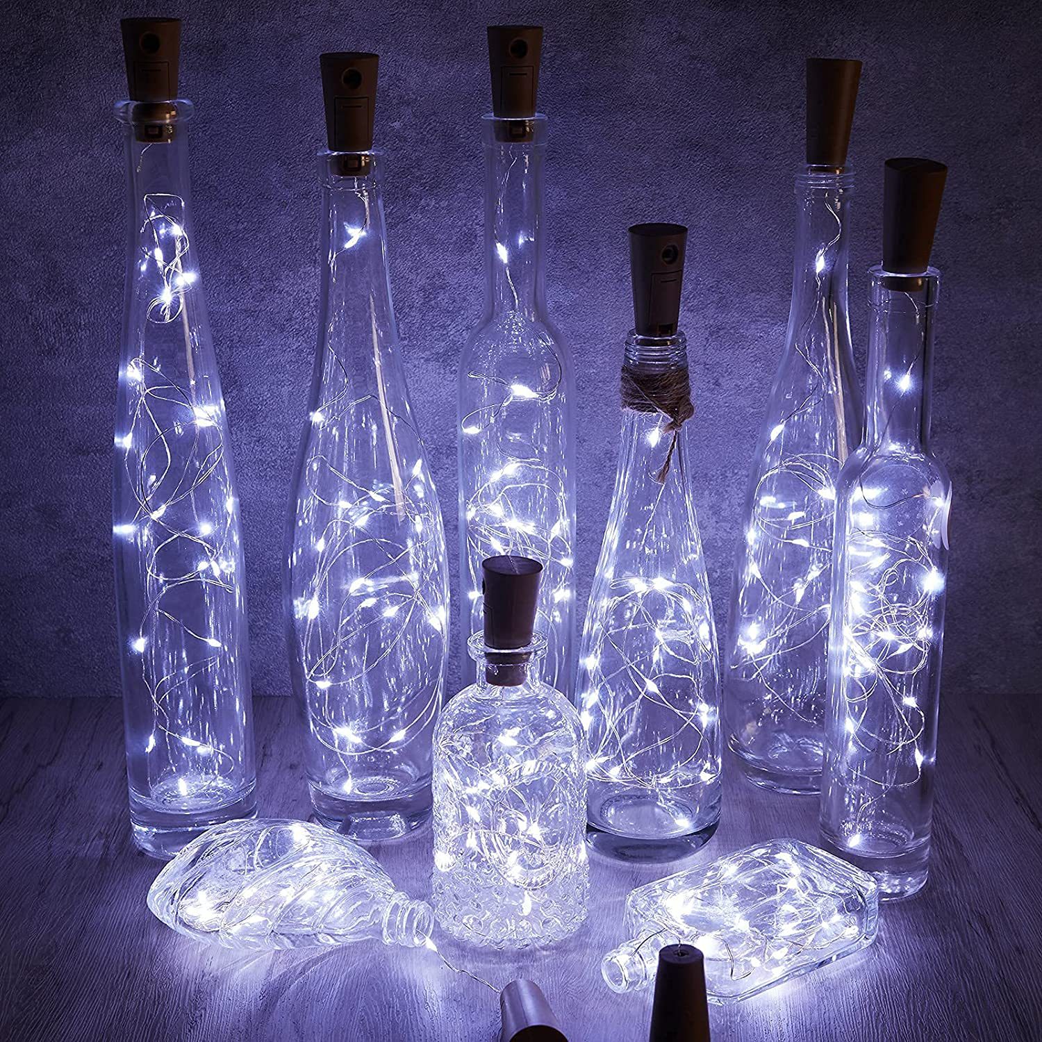新型1.5メートル15灯、2メートル20灯銀色の瓶栓銅線ランプストリング雰囲気ワインの瓶栓装飾ランプストリング