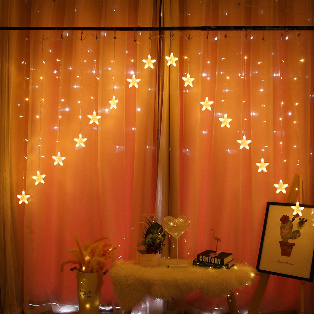5メートル逆v星カーテンライト五角星装飾カラーライトledカーテンライト電池モデル屋内外装飾