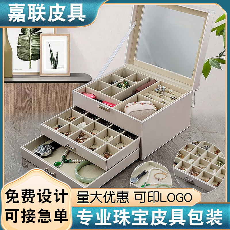 カスタマイズされた多層ジュエリー収納レザーボックスメーカーのフリップトップ引き出しタイプの多層ジュエリー収納レザーボックス