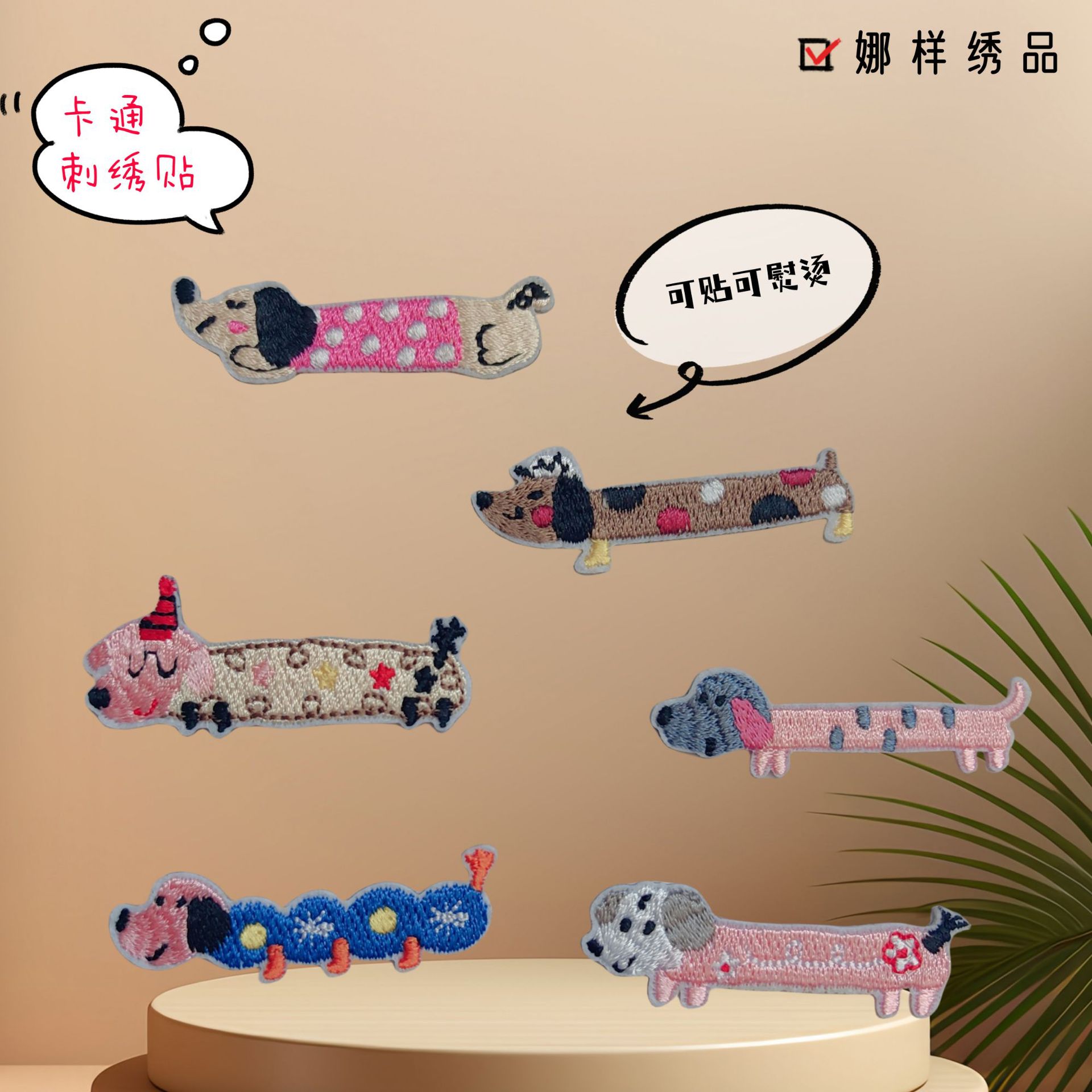 Na スタイルかわいい漫画ダックスフント犬刺繍布ステッカーガマファン diy 装飾刺繍衣類アクセサリー自己粘着アイロン可能
