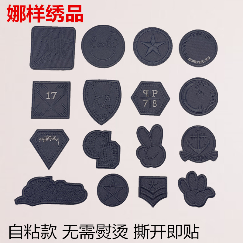 娜様ファッション黒ソファー修理補助服破パッチ服装補助材料コンピュータ刺繍純色自己接着