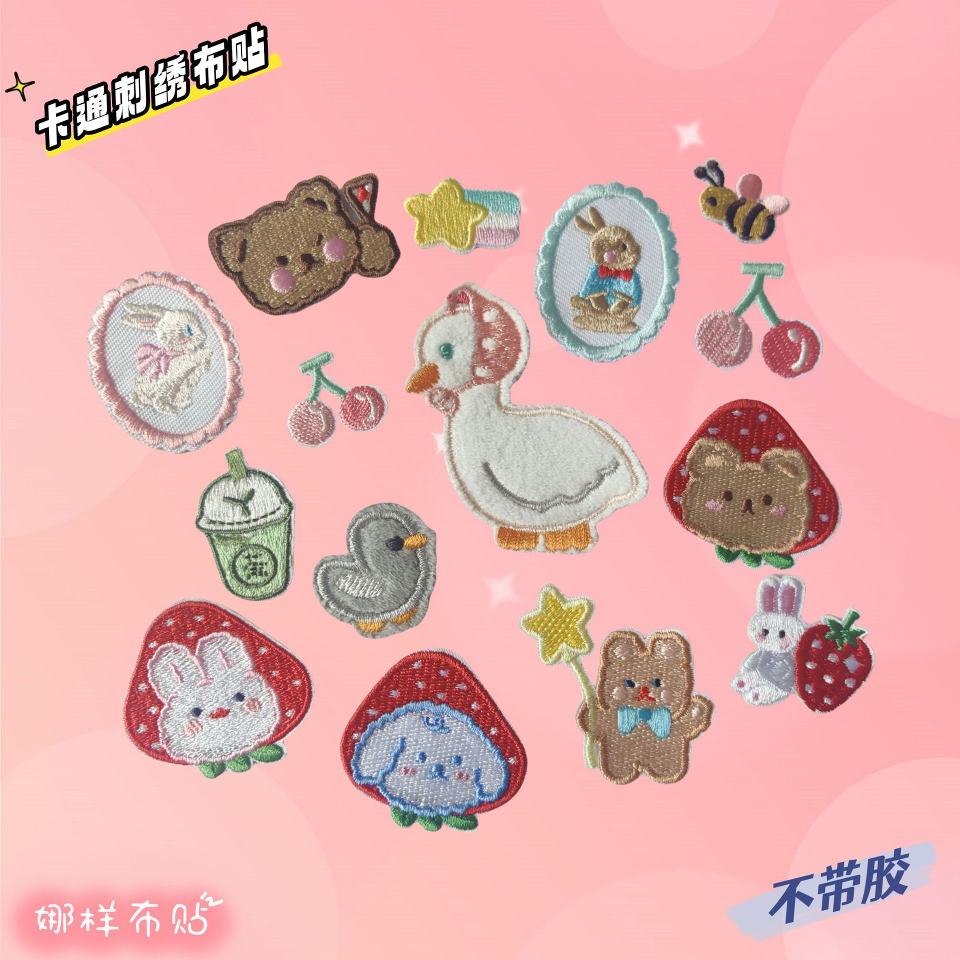 ナナ様新作クリエイティブいちご動物頭ins風熊刺繍貼りウサギデカールバッグ装飾貼り自己接着