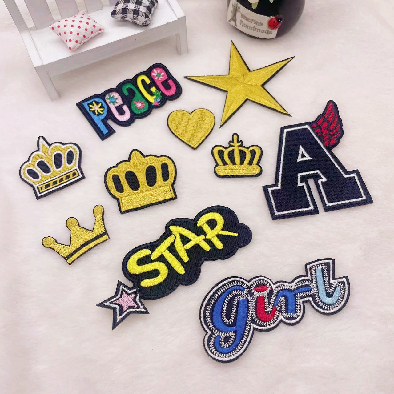 ナ様新型カラーアルファベット刺繍布貼り服パッチデカールアクセサリークラウン刺繍貼り付け