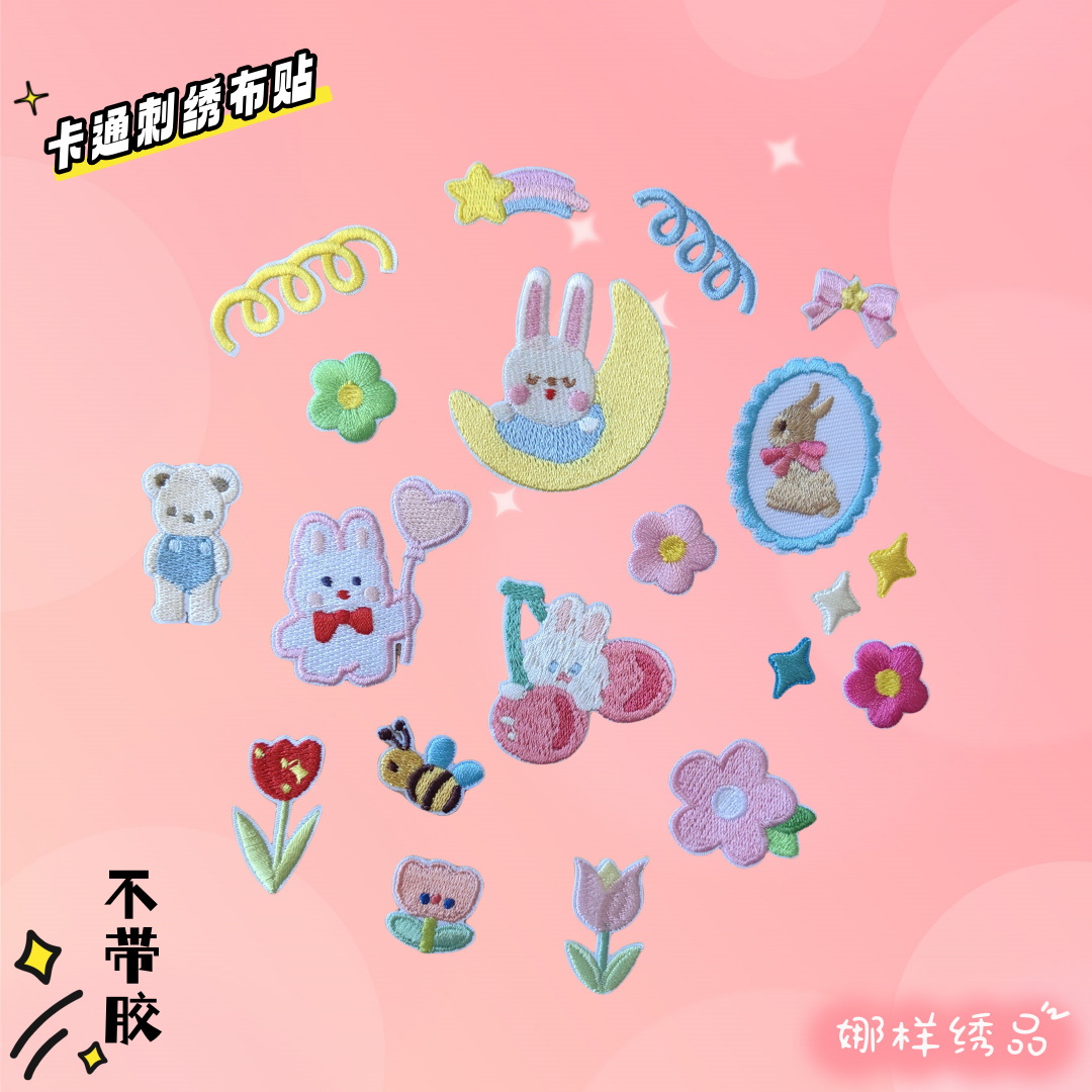ナナ様新作お祝いうさぎ刺繍布ステッカーかわいい漫画パッチヘアピン飾り手帳diy現物