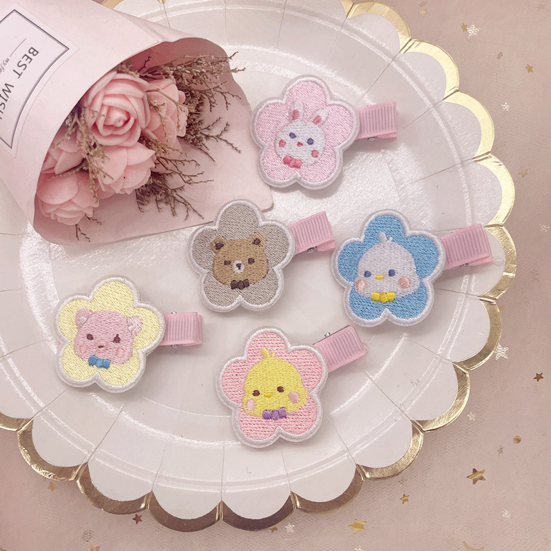 Nayang 漫画かわいい刺繍ヘアピンポジショニングヘアピン前髪壊れ毛オールインクルーシブカモノハシクリップクマヘアアクセサリー
