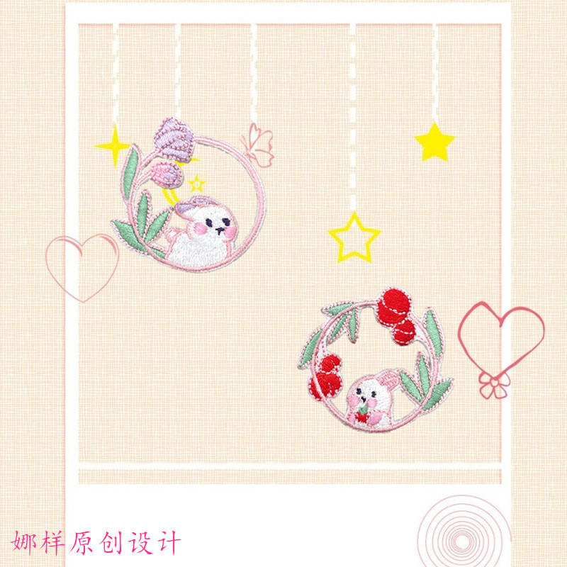 ナヤンウサギ刺繍布ステッカー手帳用提灯装飾中国風布ステッカー花柄アクセサリー粘着式