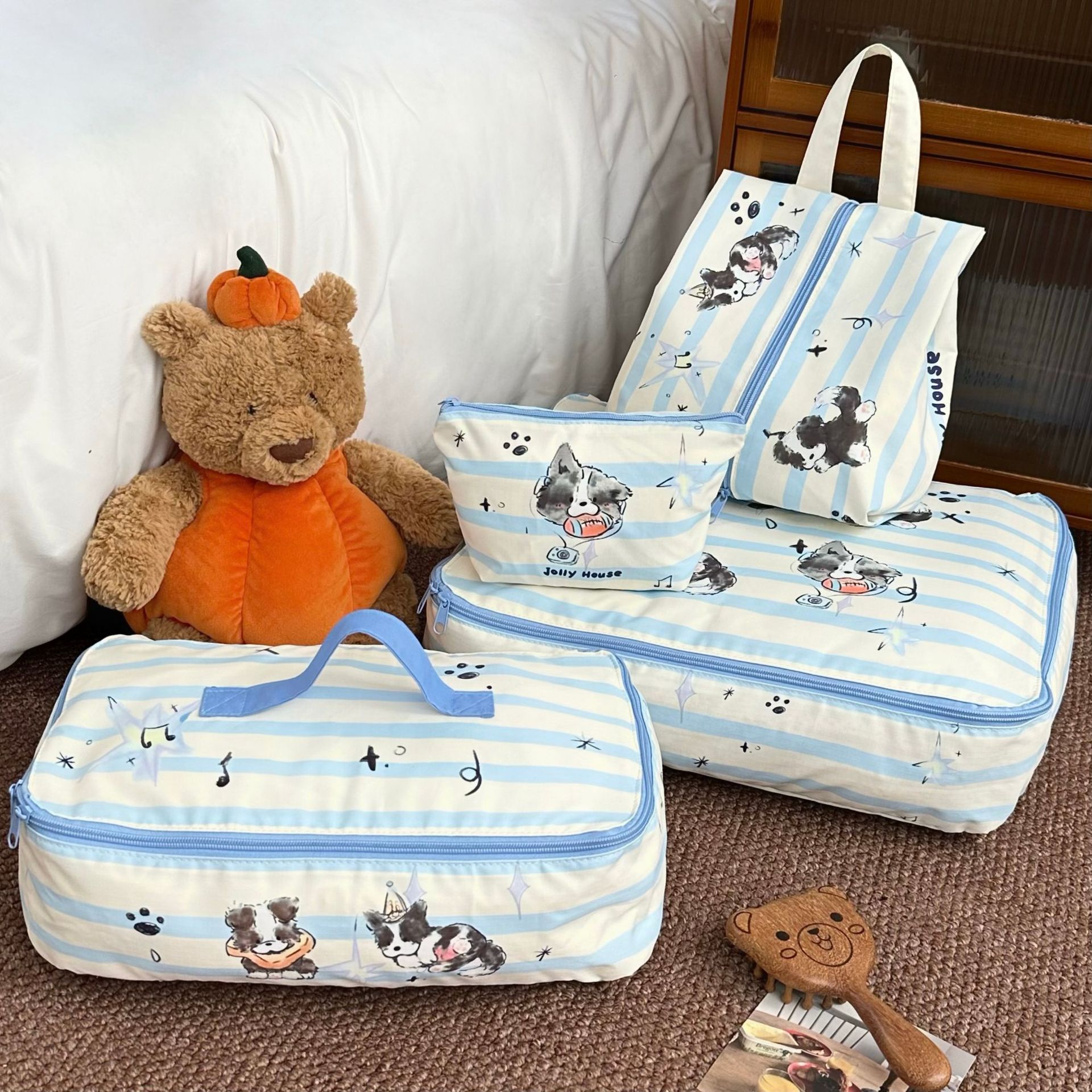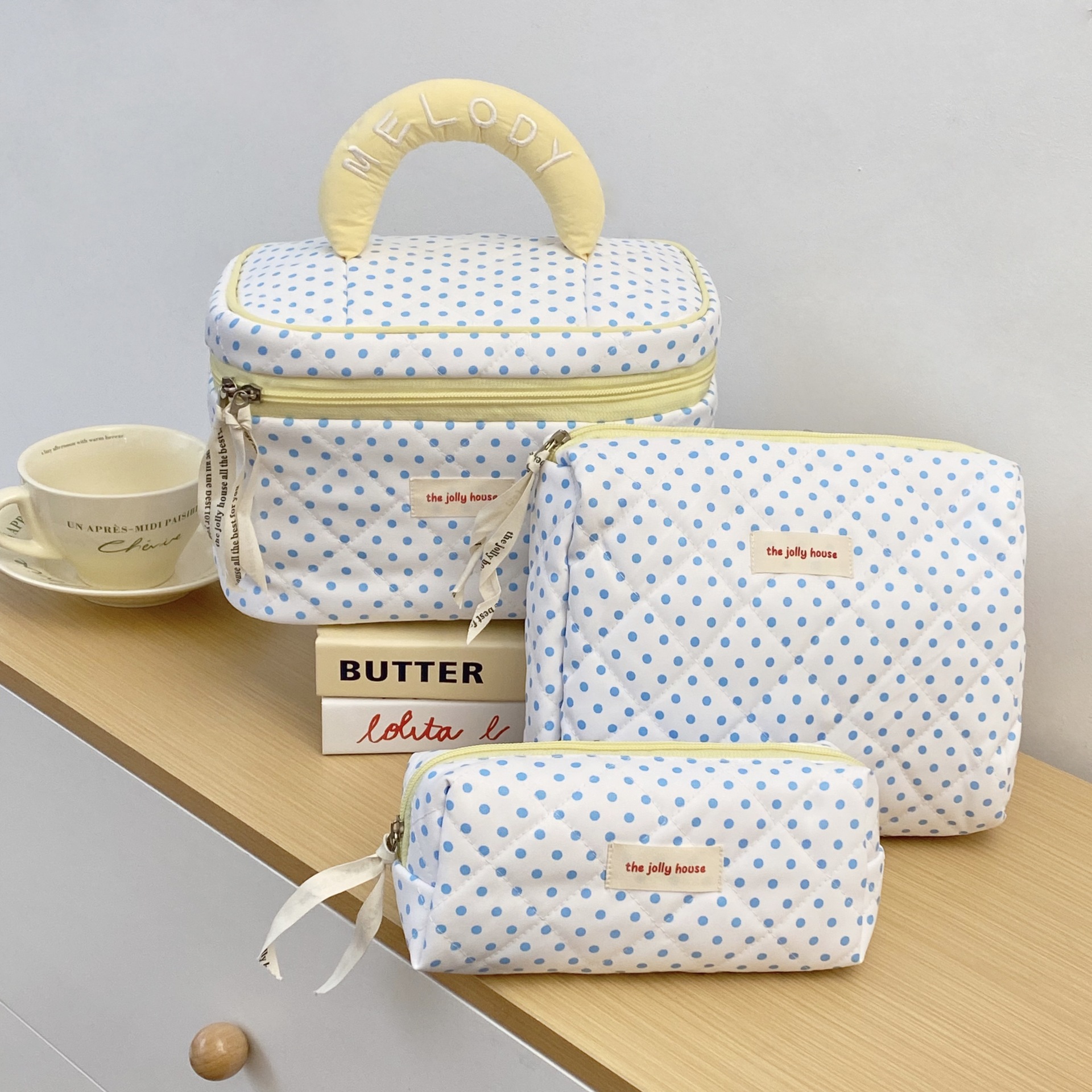 ブルー水玉模様の収納袋 2025 新しい大容量ポータブル出張洗濯収納化粧品袋女性のための 1 個から