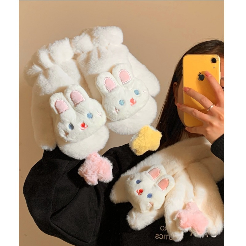星のウサギの小さい指の手袋の女性の冬のかわいいぬいぐるみは防風の防寒に乗ります。