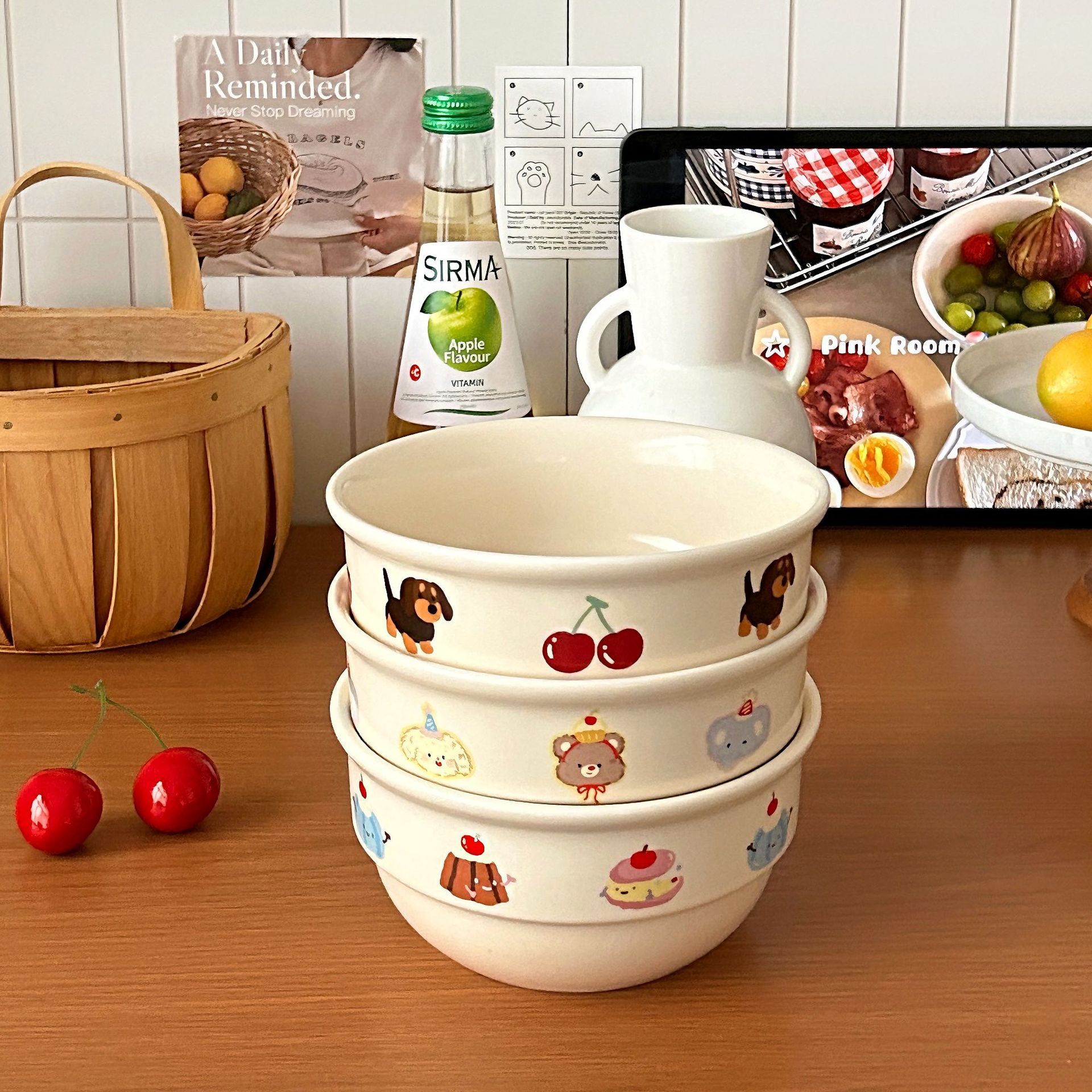 落書き漫画陶磁器ボウルヨーグルトボウルかわいい家庭用食器ご飯ボウル高温スープボウルデザートサラダボウル