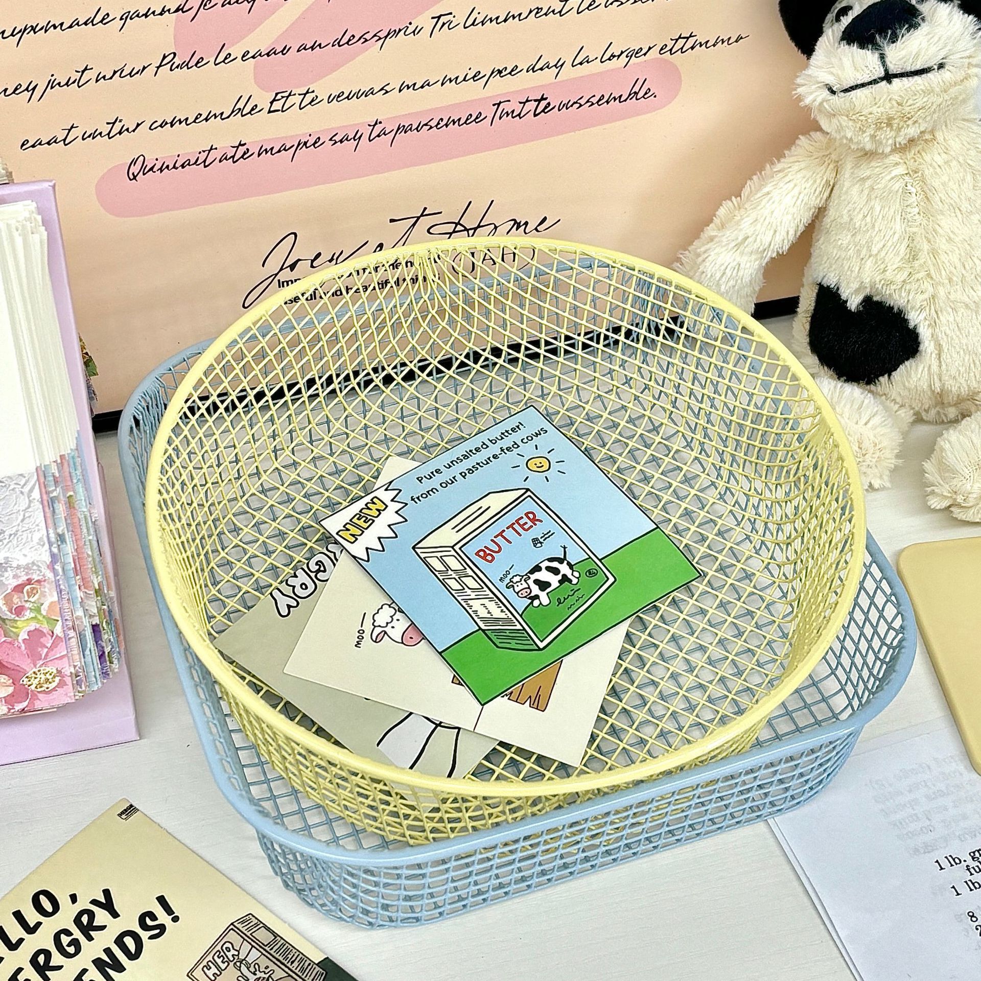 Ins風机雑物収納バスケット学生小物オフィス文房具収納ケースデスクトップ鉄芸整理収納