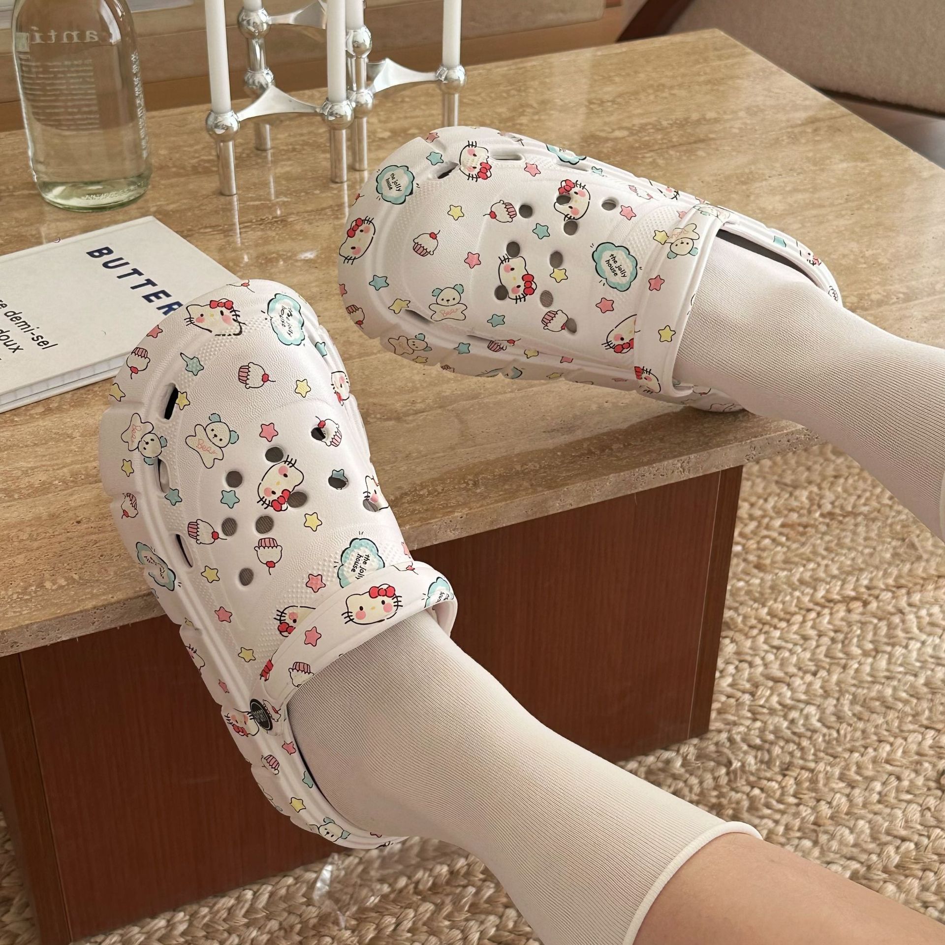 甘いクールなオリジナルの少女の心の猫の穴の靴insの風の高い顔の値の夏の海辺のビーチのスリッパの厚い底は涼しいです。