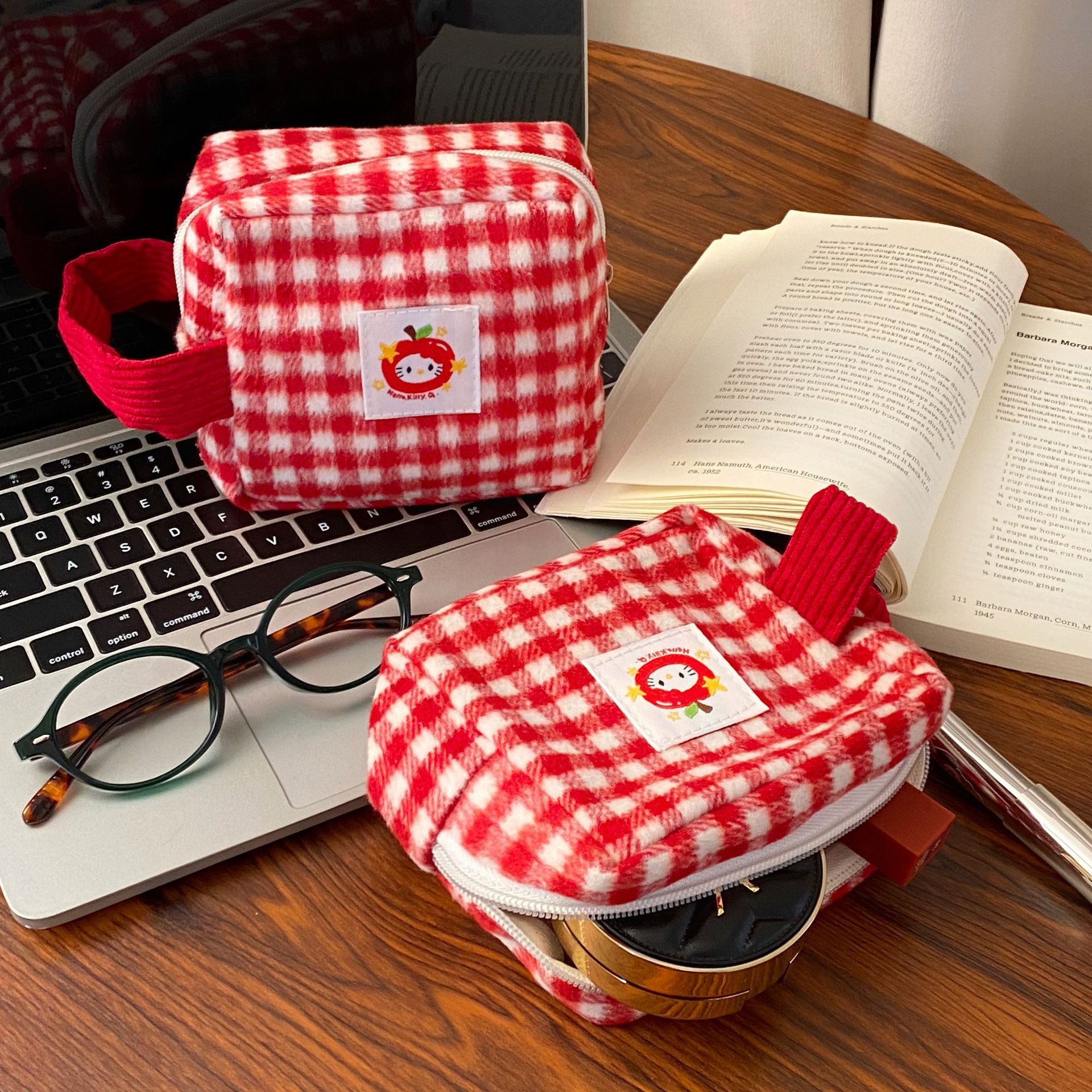 新しい赤いチェック柄の収納袋インスタイルスクエアトイレタリーバッグかわいいポータブル旅行必需品化粧品バッグ女性のための