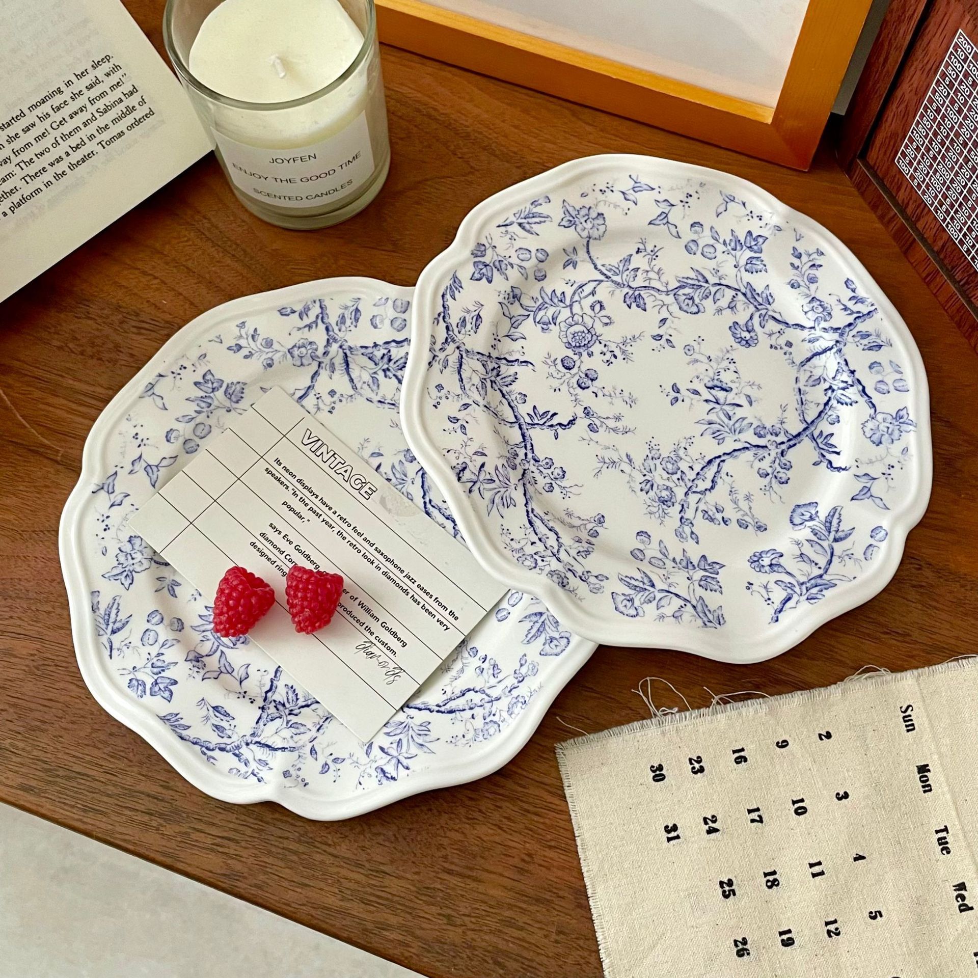 フランス風レトロブルーレリーフ陶磁器皿レストランキッチン高顔値レーススタイルデザート写真朝食皿