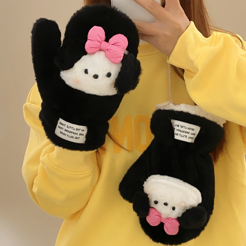 高颜値パーチャ犬冬保温手袋学生屋外自転車で首防寒ベルベットを掛けてぬいぐるみ手袋を厚くする