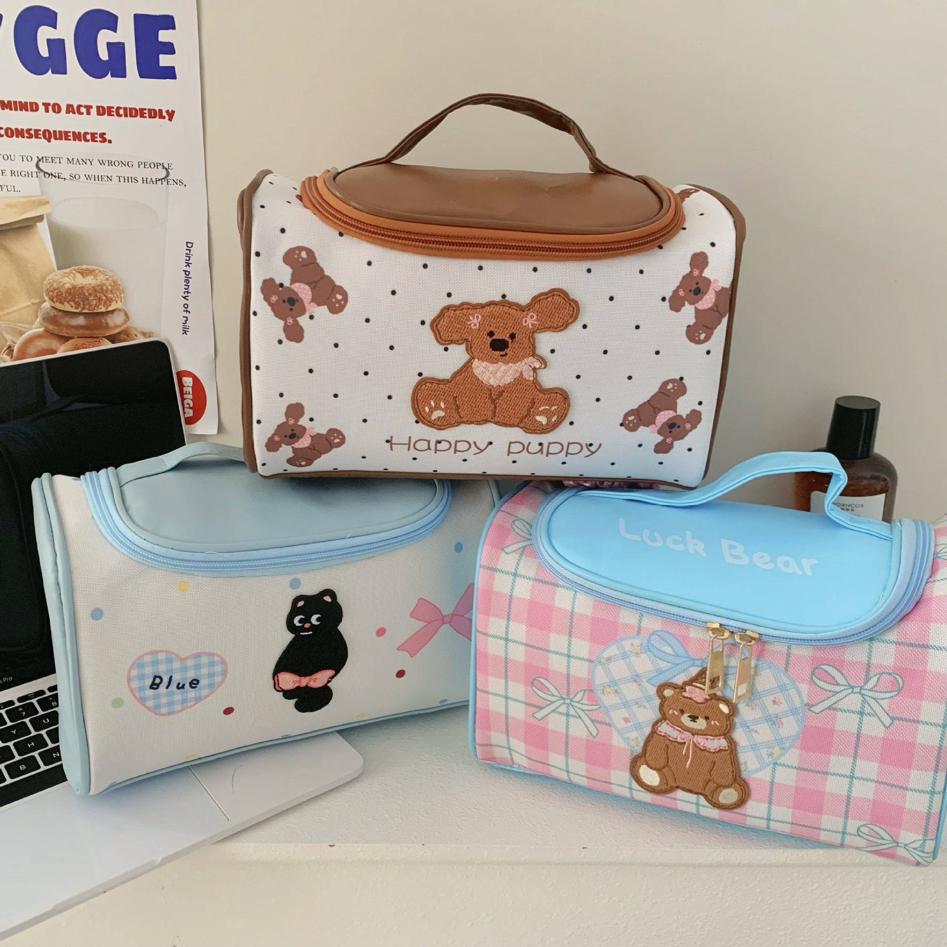 漫画の子猫の化粧袋の女性2024の新型の大容量のスキンケアの収納袋のかわいい携帯用の包み