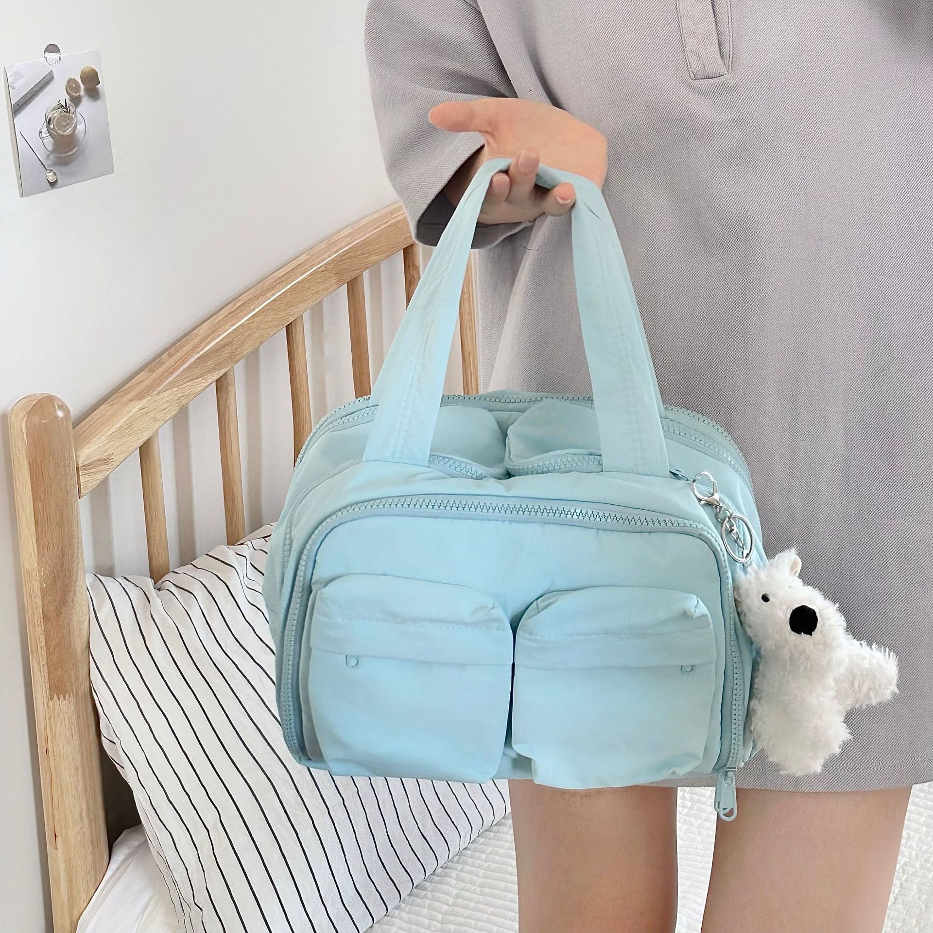 小さなフレッシュブルーの大容量収納バッグ、大容量の女性用ダブルオープントイレタリーバッグ、ハイエンドの旅行用ポータブル化粧品バッグ