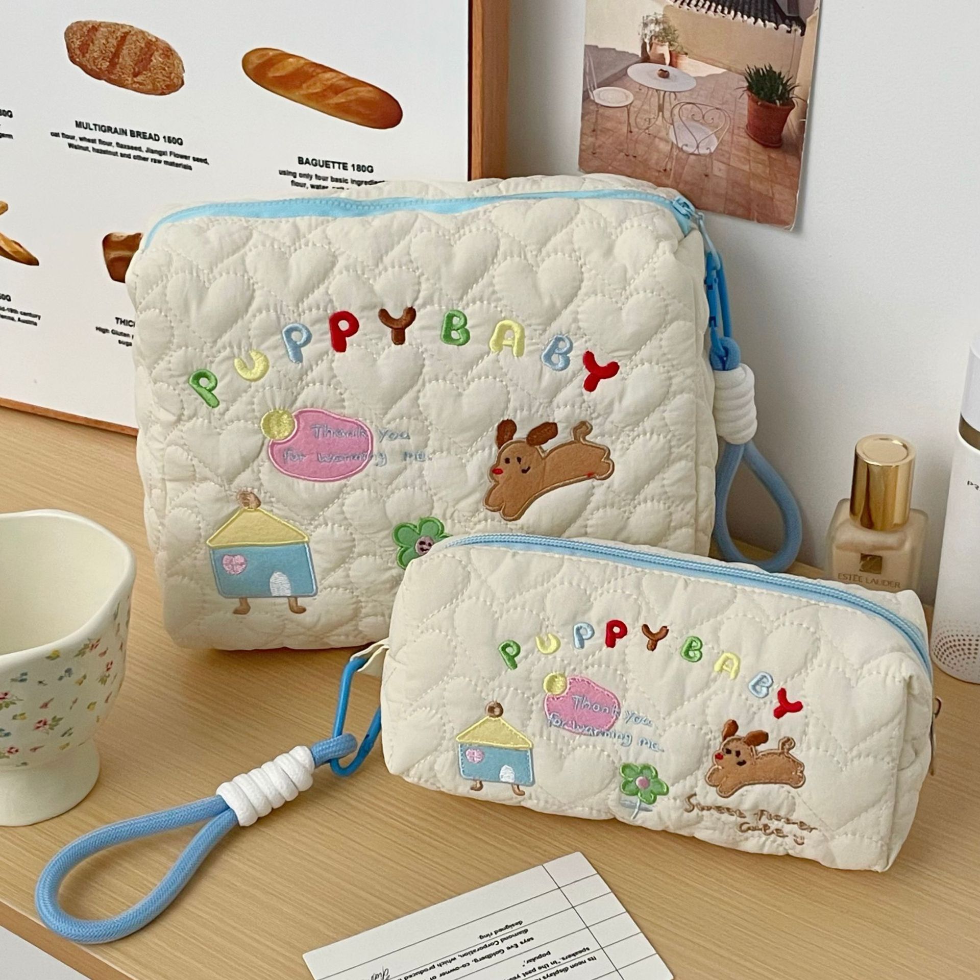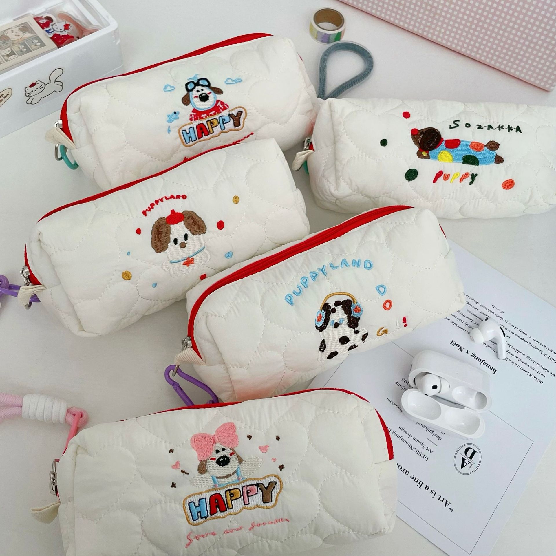 インスタ风刺繍子犬ポーチレディース新作可爱い漫画イラスト学生文房具バッグ大容量収纳バッグ