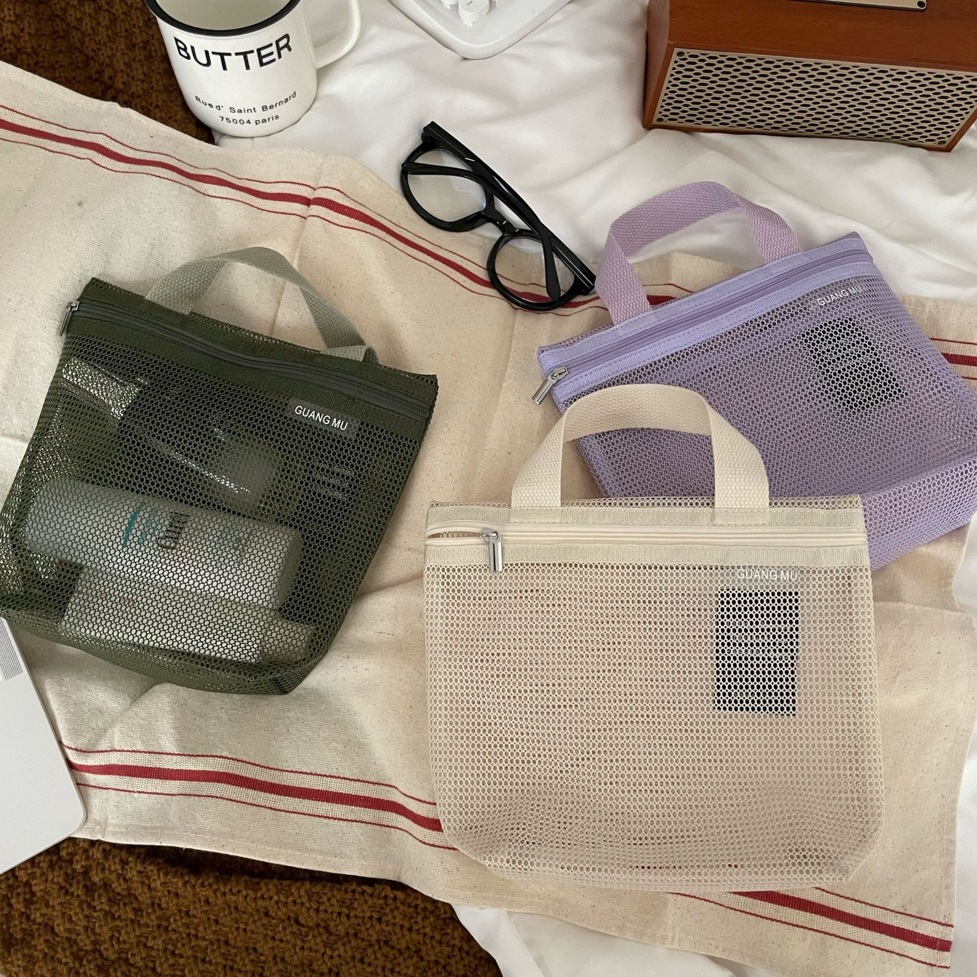 Insシンプル洗面バッグメッシュ携帯化粧バッグ女性入浴フィットネス旅行携帯通気排水収納袋