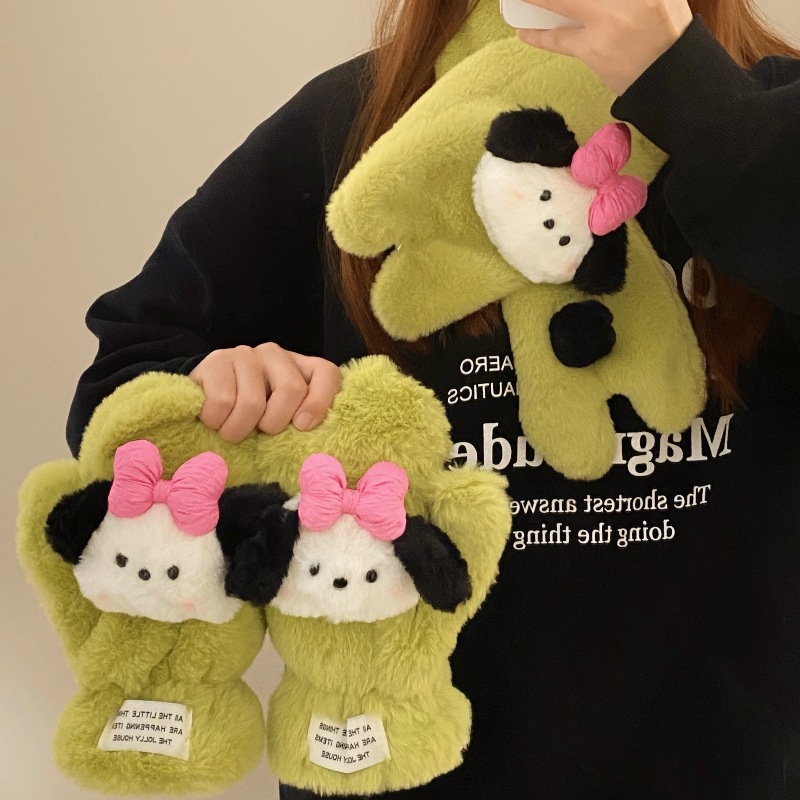 2024新型マフラー漫画豹柄子犬ぬいぐるみマフラー学生が首を保護する防寒保温ベルベットマフラーに乗る