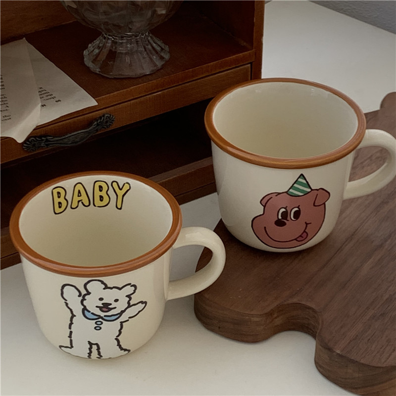 韓国式レトロな熊の子犬の陶磁器の杯の少女の心の漫画のマグカップのカップルの朝食のコップの牛乳の杯