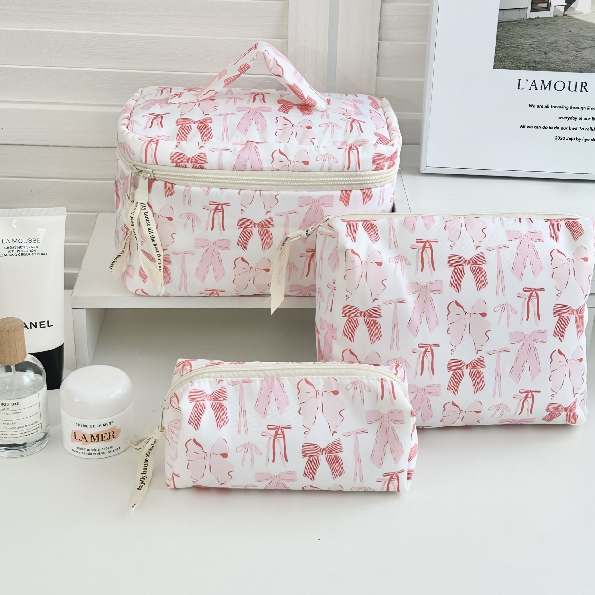 ピンク蝶結び化粧バッグ少女心女性大容量収納バッグ学生寮化粧品洗面収納袋