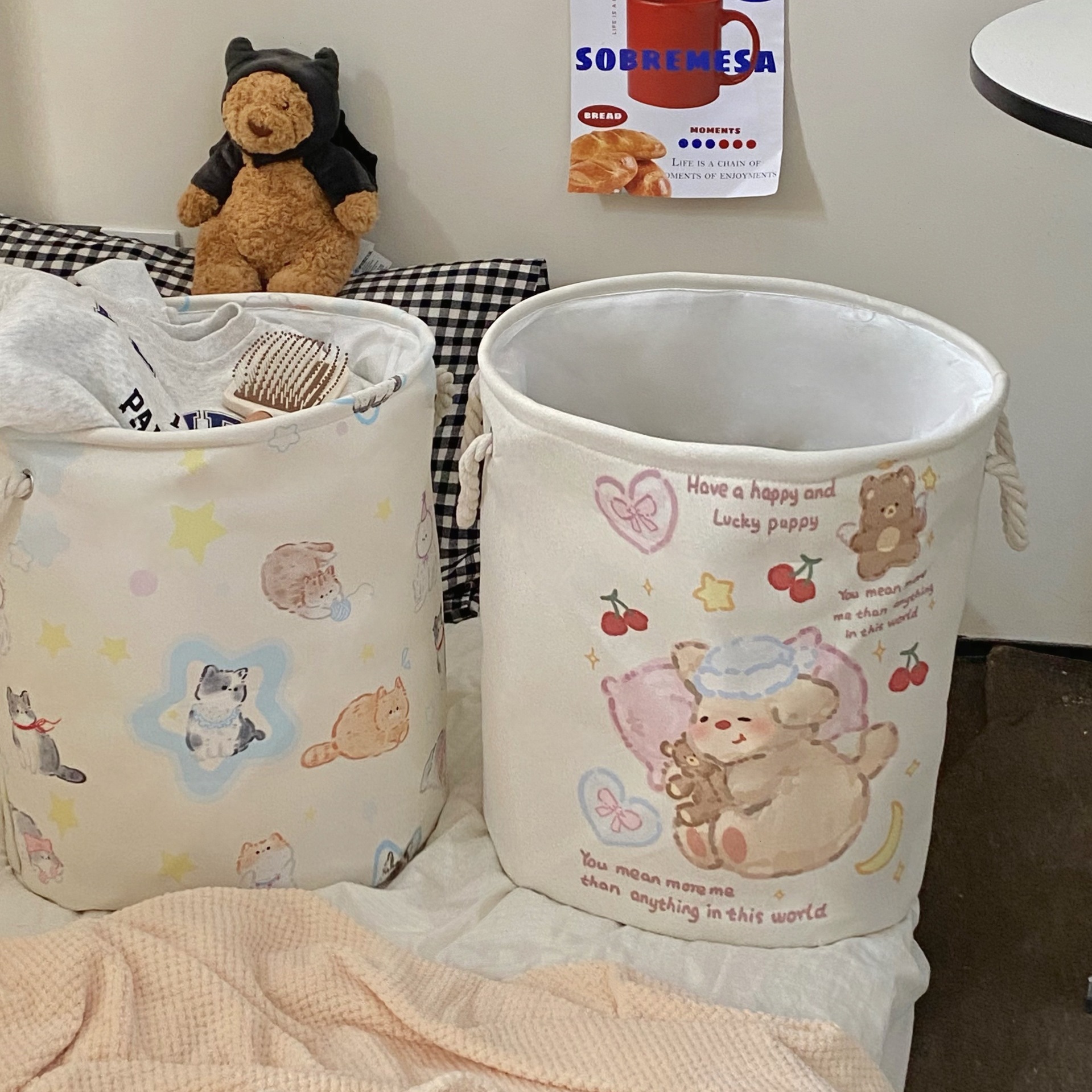 かわいい猫の綿のひもの収納かごは大容量のデスクトップを編んで防塵して蓋の収納桶のごみの収納かごの家庭用を持ちます。